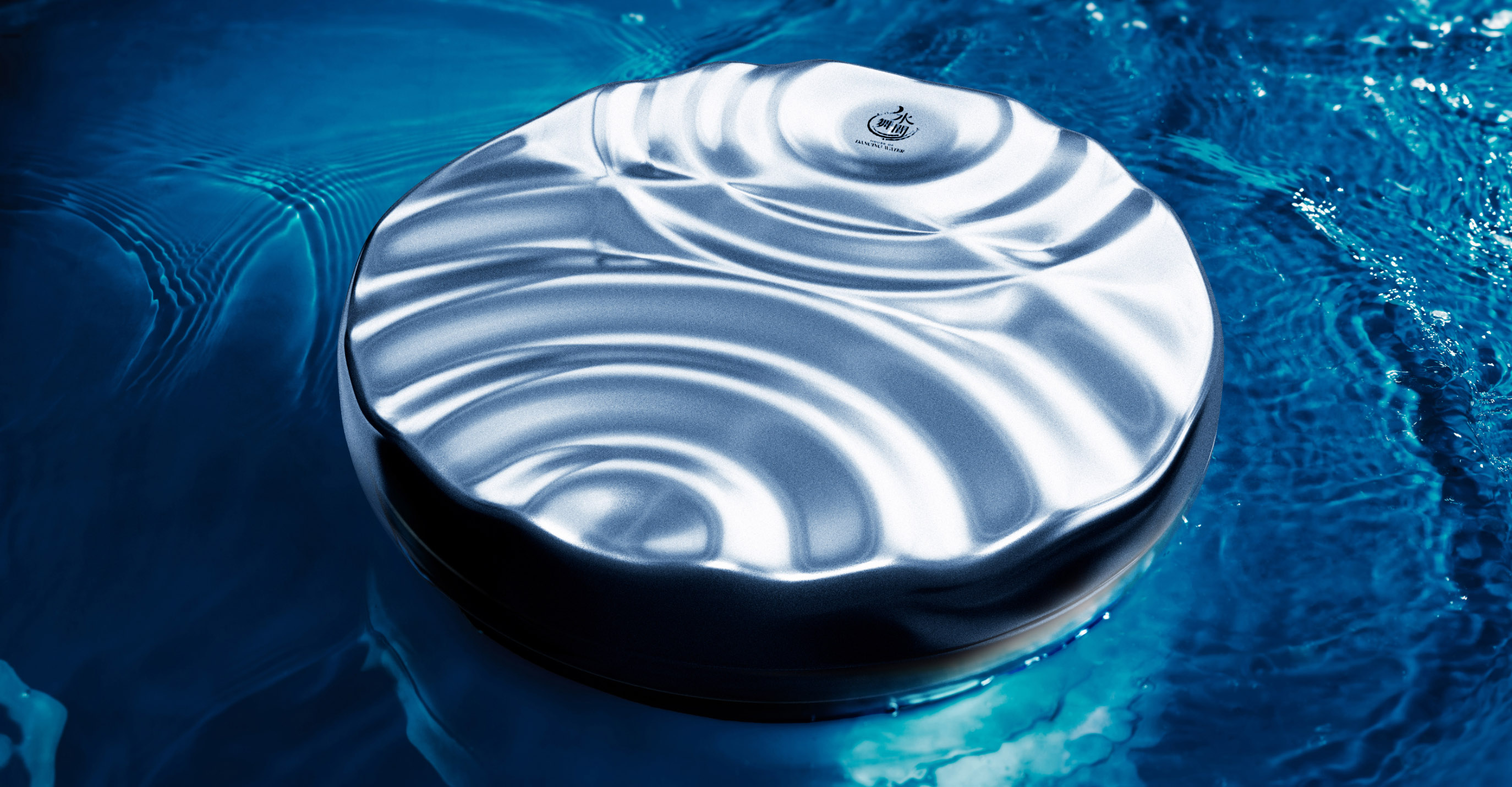Captures the rhythm of water in motion beneath the glow of the full moon. Gentle ripples flow across the metallic surface, reflecting shifting hues of light and shadow, a dance between moonlight and water.